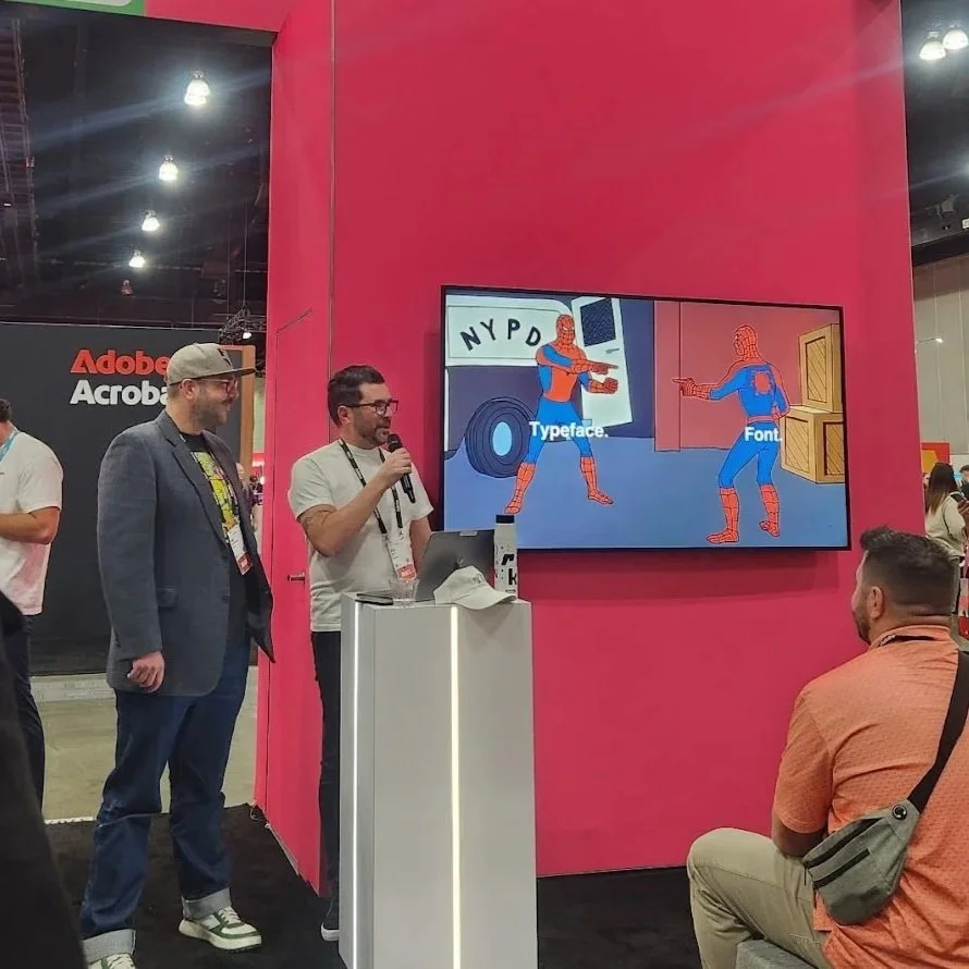 We also created space for short, focused presentations within the booth - something we’d never done before. These included case studies of work we did for the Obama Foundation and PRIDE Amesterdam, product demos, and a font licensing overview I delivered with a member of our legal team.